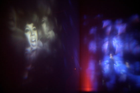 3-channel video installation, motors, rotating crystal prisms, dimensions variable
